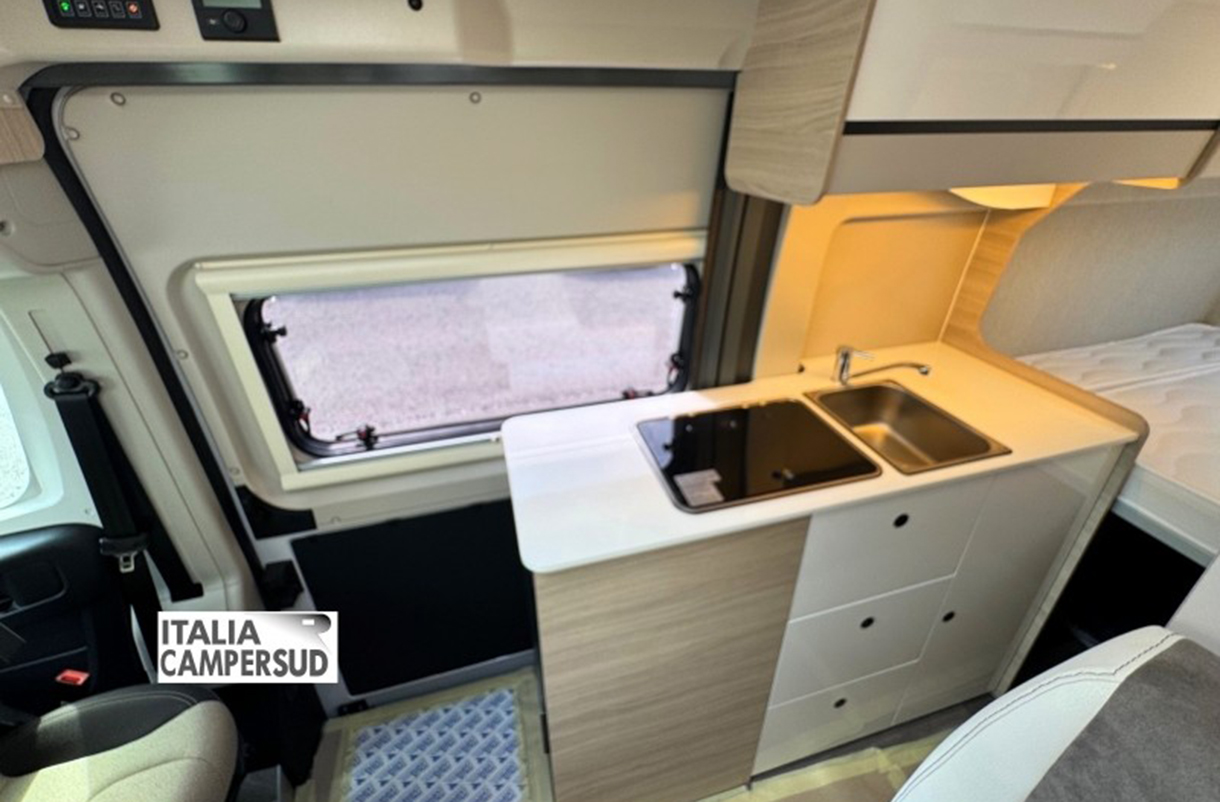Il veicolo è dotato di Pack Comfort, fodere coprisedili, oblò panoramico, paraurti in tinta, zanzariera sul portellone d’ingresso, oscuranti plissettati in cabina e Pack Style.